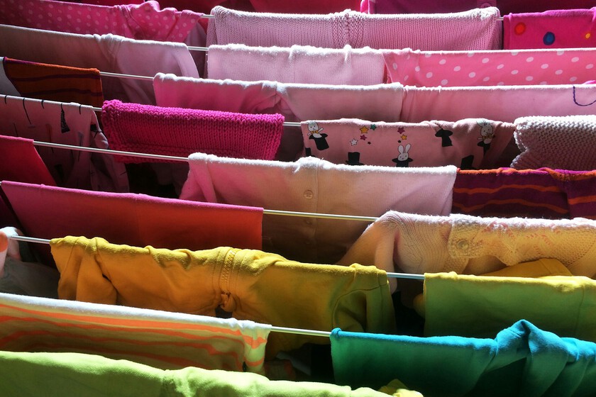 Más cosas que podemos hacer. Lo ideal antes de tender es sacudir la prenda bien para separar las fibras de la ropa y facilitar el secado. Además, dentro de lo posible, si lavamos por la mañana, podremos aprovechar más horas de ventilación natural. También es importante tender bien, separando la ropa y dejando espacio entre las prendas para que circule el aire. Aplicando todo esto en su conjunto, reduciremos (y mucho) el tiempo de secado de nuestra ropa.