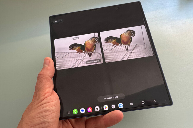 La edición generativa ya estaba presente en la gama Galaxy gracias a Galaxy AI, permitiendo borrar objetos, recrear fondos o modificar partes de una foto con la ayuda de la inteligencia artificial. Lo que hace único al Z Fold7 es que ahora esa edición se muestra en dos paneles a la vez: a la izquierda la foto original, a la derecha la imagen modificada.