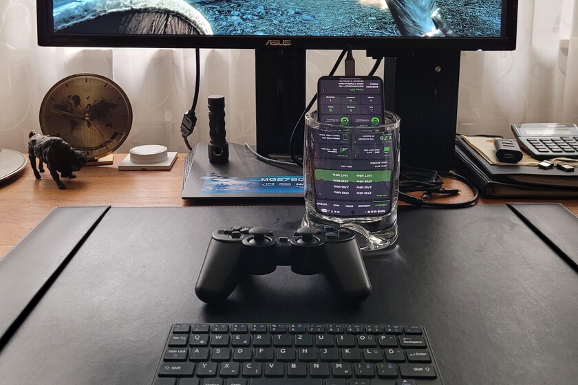 Para poder jugar sin problemas, el puerto USB-C del teléfono está conectado a un HUB USB, gracias al cual se puede conectar, de forma simultánea, un cable de corriente y un cable HDMI para conectar el móvil al dispositivo. Se trata de una forma un tanto 'extrema' de jugar con un teléfono, pero no deja de ser muy llamativa. Yo no la llevaría a cabo, pero sin duda es una prueba más de lo que es capaz el hardware de Samsung.