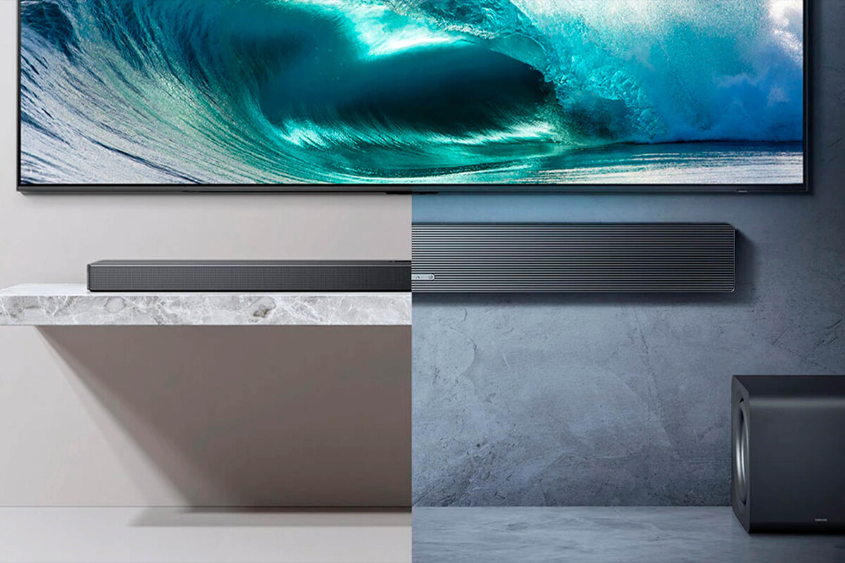 El equipo ofrece una configuración 3.1.2 canales con 8 altavoces y una potencia total de 345 W, 165 de ellos del subwoofer, que se puede usar tanto con cable como sin él: con el conjunto conseguiremos un sonido envolvente sin instalaciones molestas o complicadas y nos olvidaremos de los siempre justos 20 ó 40W que suelen ofrecer las Smart TVs más convencionales.