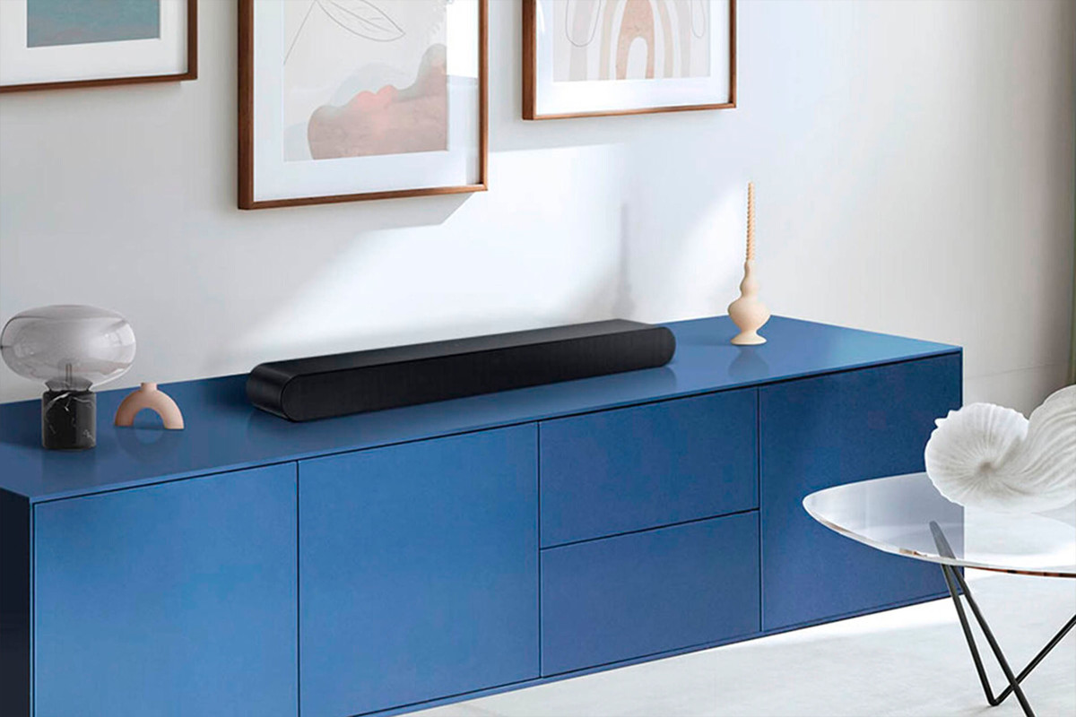Ofrece unas dimensiones de 908.0 x 125.0 x 158.0 mm y cuenta con unos laterales redondeados que le dan un aspecto cuidado y diferente. La podemos colocar tanto bajo la tele como colgada de la pared.